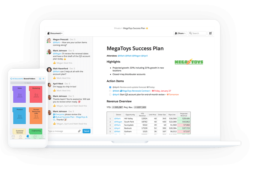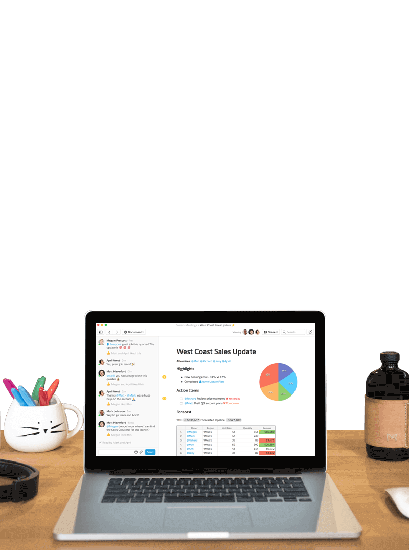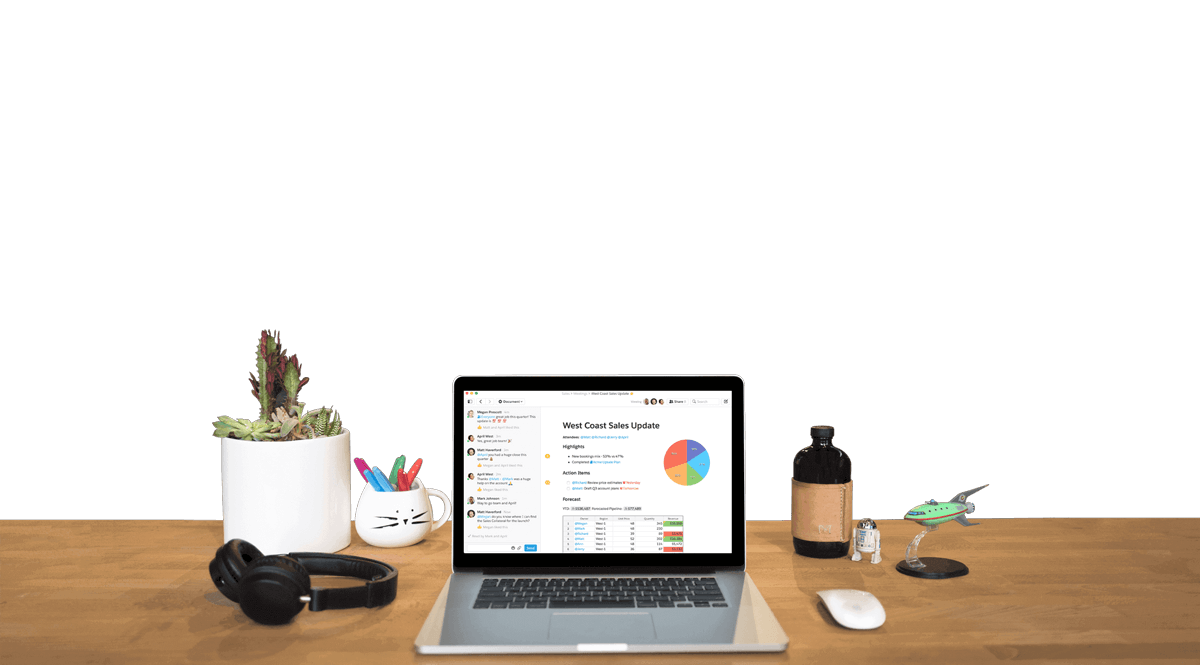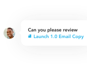 Stop managing feedback through long email chains, or juggling multiple versions of a file. In Quip, there’s just one version of your work and every discussion has context.