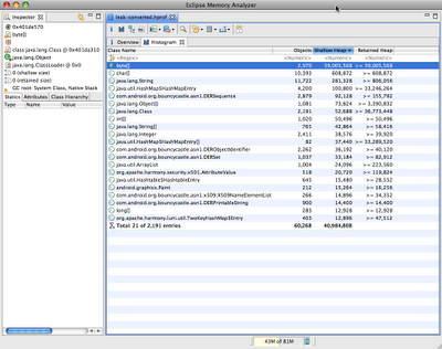 Translated into English, this tells us that the top-level routine consumed 100% of the time if you include everything it called (well, yeah), but only 0.9% of the time itself. The next line suddenly starts to get real interesting: java.io.PrintStream.println(Object) and whatever it calls are using 65.2% of the app’s time. This is the code that writes the JSON out to the SD card. Right away, we know that apparently the task of pulling the data out of the phone’s ContentProviders doesn’t seem to be very expensive; it’s the output that’s hurting.