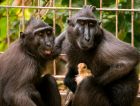 Niv, a four-year-old Indonesian black macaque, has made friends with a chicken that wandered into her cage at an Israeli zoo.