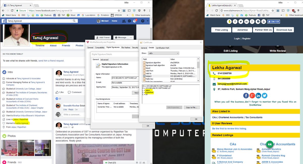 Dug up the "PUP" owners email, punched into FB, which pulled up his FB profile. So, Malware Author Pro-Tip: If you're going to make SIGNED malware that impersonates McAfee, don't make yourself easy ID.