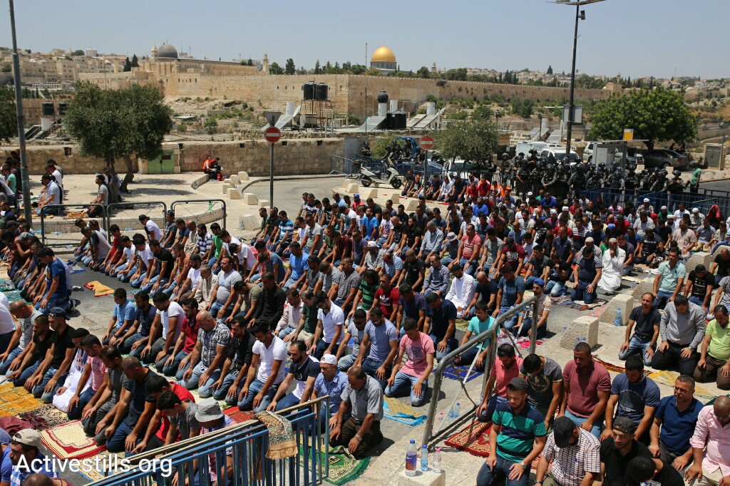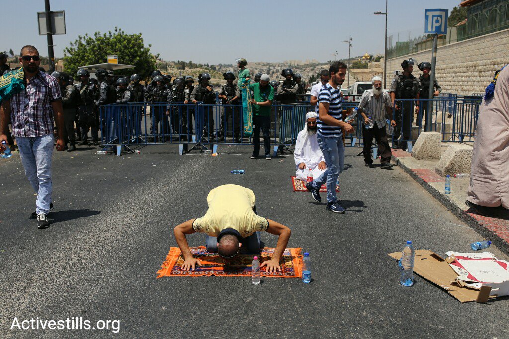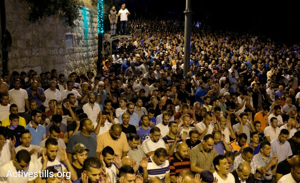 TONIGHT: Palestinians continue to hold their daily night Muslim prayer in streets adjacent to 's old town.