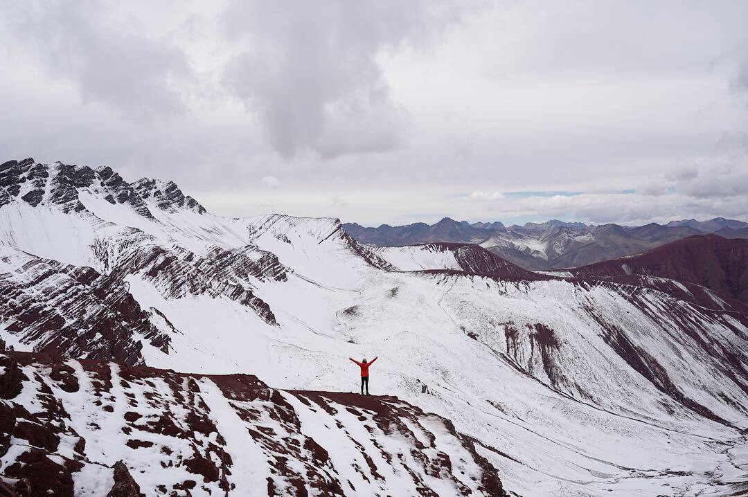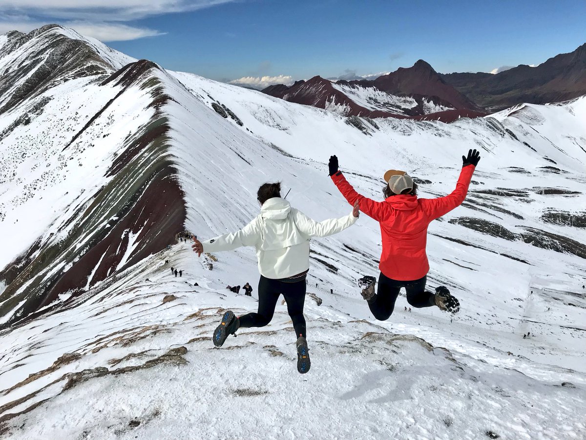 #RainbowMountain &#RedValley in#Peru was one of the most beautiful hikes I’ve done, but they sure make you work for it at 16,700ft elevation! It snowed the night before so the colors of