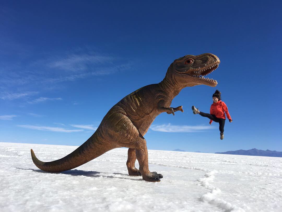 Obligatory perspective pictures from Salar de Uyuni, Bolivia. The end result vs. reality is comical; check out the two camera angles.