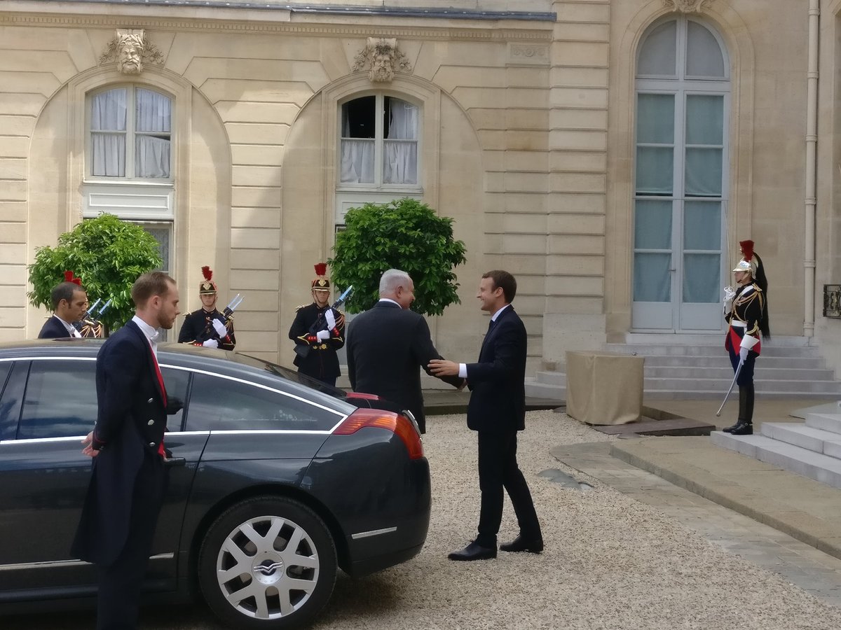 הסתיימה הפגישה- הנשיא מקרון: מגנים את הפיגוע בי"ם. רוצים לראות את המו"מ המד' מתחדש. נתניהו: הסיבה לאי חידושו סרוב הפלש' להכיר במדינה יהודית.pic.twitter.com/qAE8dc9Wji