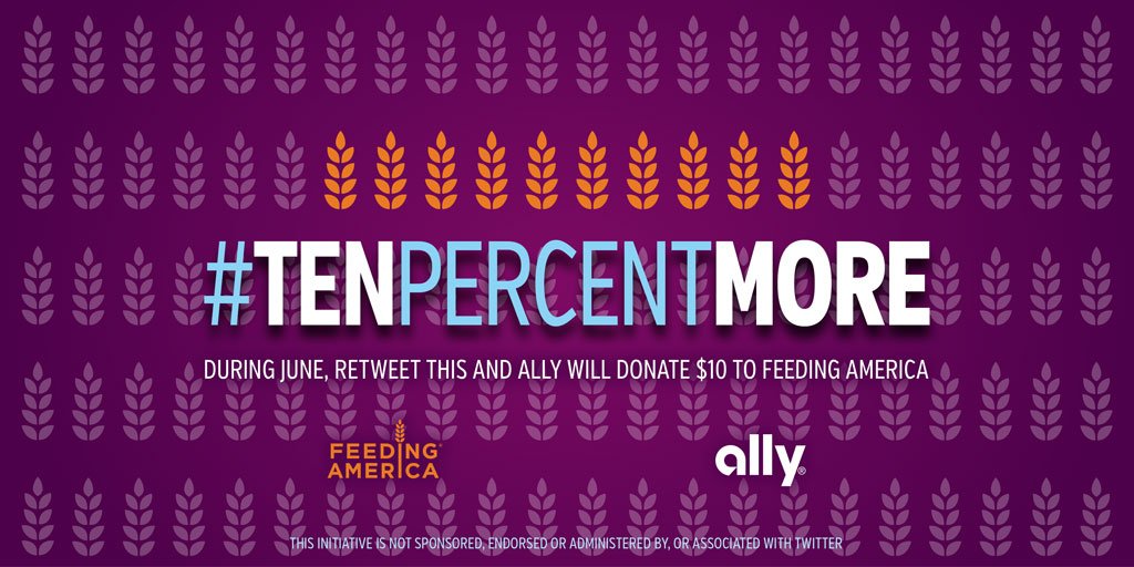 @Ally will donate $10 to@FeedingAmerica for every tweet of#TenPercentMore by 6/30 http://bit.ly/1UQwxnS pic.twitter.com/kfKdHc8T2d