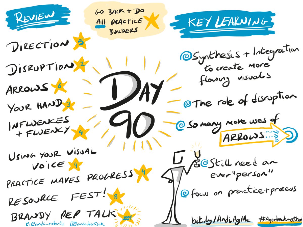 I have just wrapped up Day 90 of the 90 that make up the “Agerbeck Method” on visual thinking from . I really recommend it: solid content and ideas! The course can be found at . I have written up notes every day at