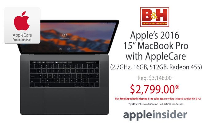 #Apple#Deal: Space Gray 15"#MacBookPro (2.7GHz, 16GB, 512GB, 455) w/ AppleCare for $2,799 http://appleinsider.com/articles/17/02/26/lowest-price-anywhere-space-gray-15-macbook-pro-27ghz-16gb-512gb-455-with-applecare-for-2799 …pic.twitter.com/3uUFiCIb4t