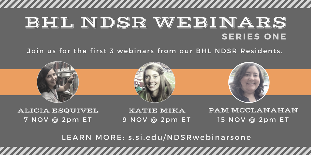 #BHLNDSR residents are working on projects to improve#BHLib. Learn about their work during our#NDSR webinars: http://s.si.edu/NDSRwebinarsone pic.twitter.com/Z40lgYDvXR