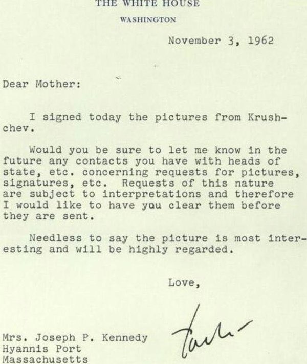 16. JFK asks his mother (after Cuban Missile Crisis) not to contact Nikita Khrushchev again without asking him first: