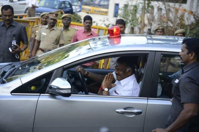 #opaneerselvam left#rajbhavan after meeting acting#TNGovernor. The meeting lasted for 20 minutes@businesslinepic.twitter.com/gLlgVkwI1g
