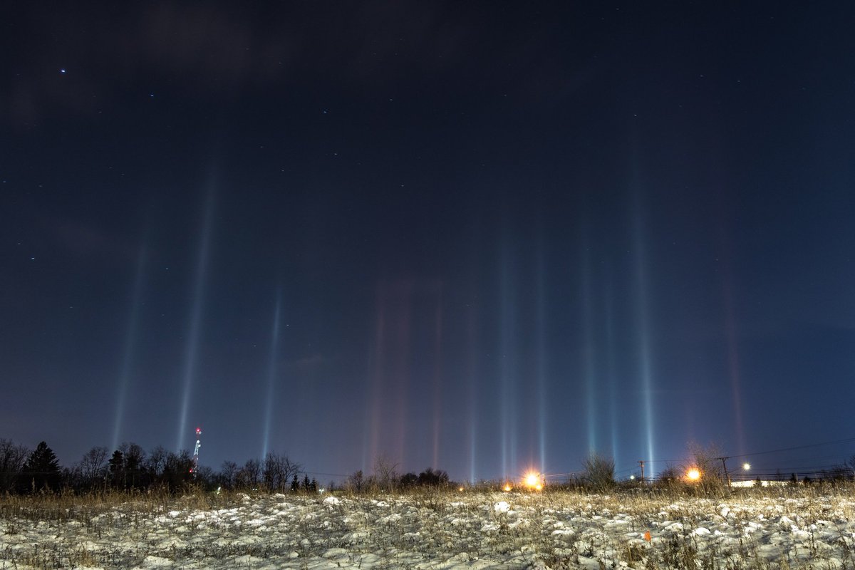 Normally seen closer to the Arctic, blasts of cold weather have brought "light pillars" as far south as Ohio: http://bit.ly/2CoG0Qi .