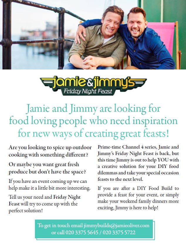 The Jamie and Jimmy's Friday Night Feast team are making a DIY beer pump and need an event to try it out at. Interested? All details below:pic.twitter.com/UNh0iJduIL