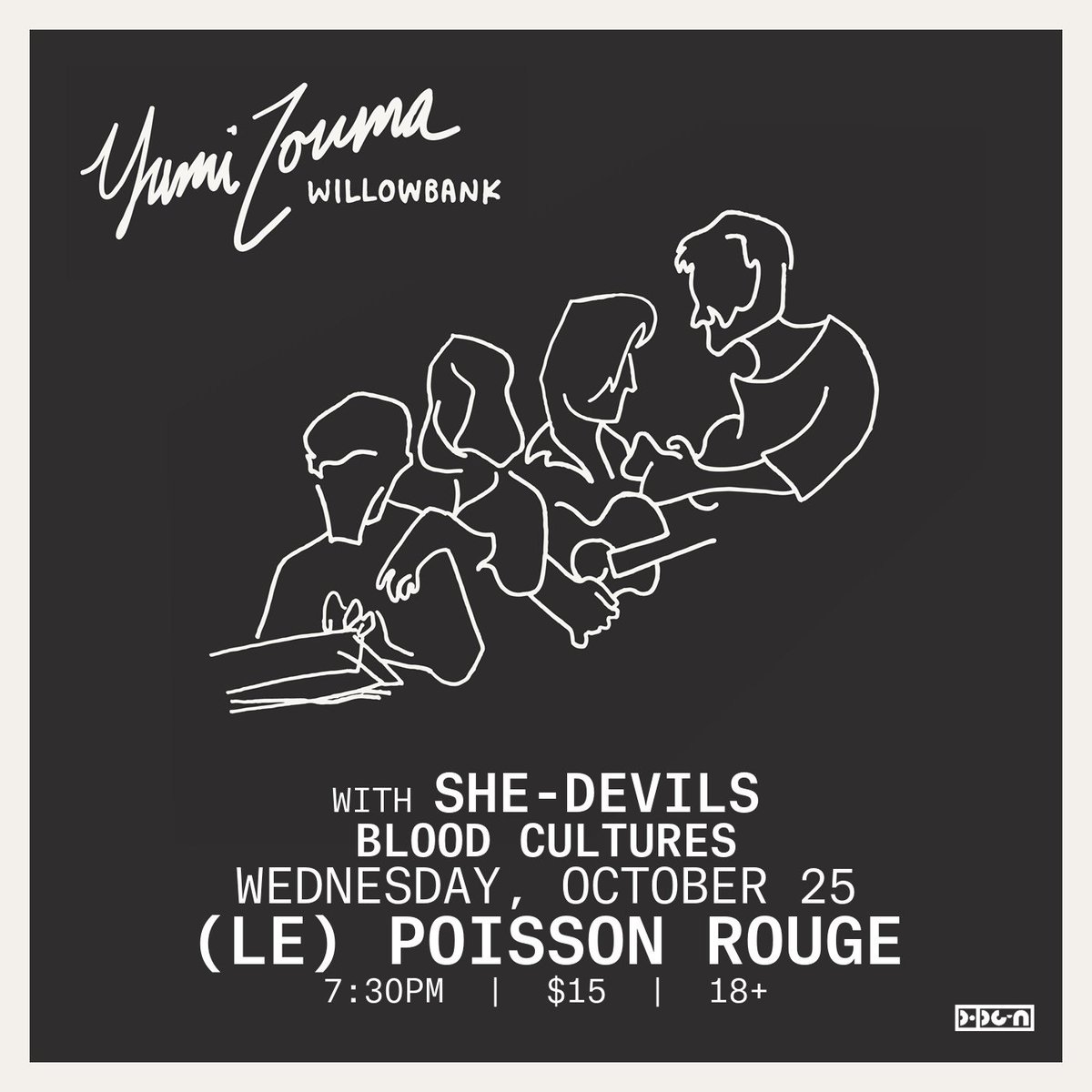 tonight @ lpr! ~yumi zouma, she-devils, blood cultures~ tickets: http://bit.ly/2y7dBdS pic.twitter.com/TbvEevRQKW