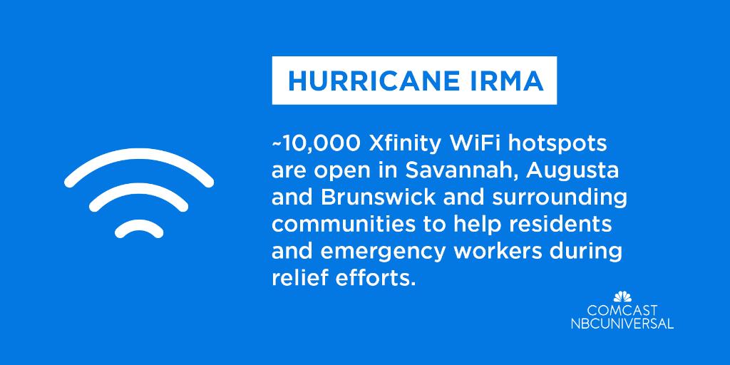 Comcast opens 10,000 free Wifi hotspots in Georgia to aid Hurricane Irma recovery via