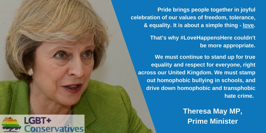 #PrideinLondon today. PM@theresa_may says that#Pride is about one simple thing: LOVE!#lovehappensherepic.twitter.com/Gb92G9sgX2