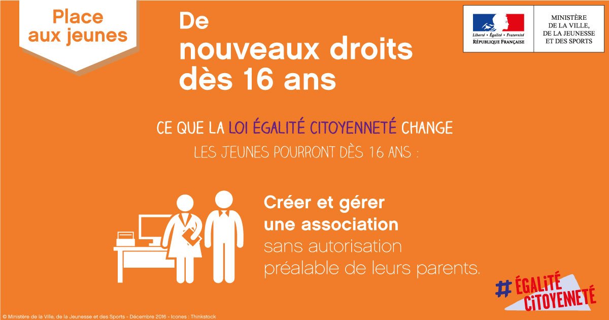 #EgalitéCitoyenneté] Tu as 16 ans et des idées plein la tête ? Tu peux désormais créer et gérer ton#asso >> http://bit.ly/2maUTOd pic.twitter.com/bq6FJxBGmP