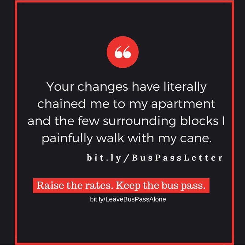 "Your changes have literally chained me to my apartment" http://bit.ly/BusPassLetter