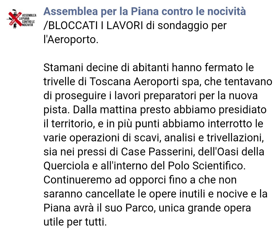 Stamani bloccati i lavori di sondaggio per il nuovo mega aeroporto di