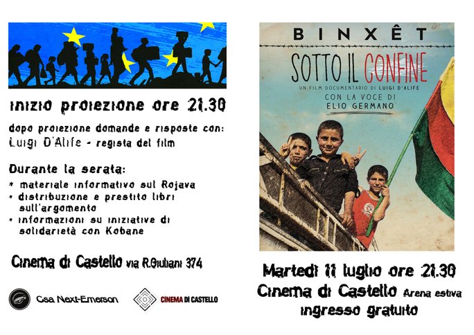 #Binxet - Sotto il Confine" Stasera a#Firenze presso il Cinema di Castello Ci vediamo lì ;)pic.twitter.com/95uCKaS6kA
