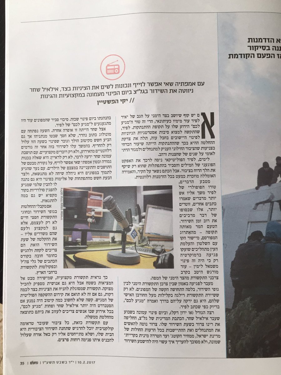 למעשה הוא מדבר רק על שידורי הטלויזיה. אולי הפשרה תהיה שיתנו רק לרדיו ולדיגיטל לעלות בסוף אפריל.