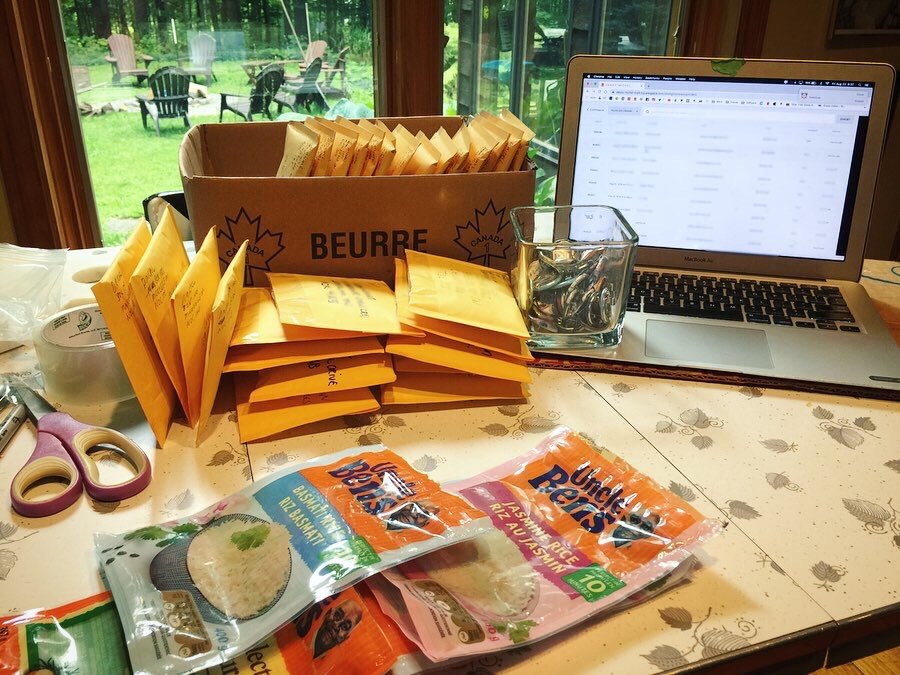 Who knew people liked old rock-pins so much!?? I spent the morning packing orders from last night. I fill out the envelope and Larry licks them. ♻️ In an attempt to be less wasteful, some of you might receive your pin-sets in various used packaging from my kitchen 🌎