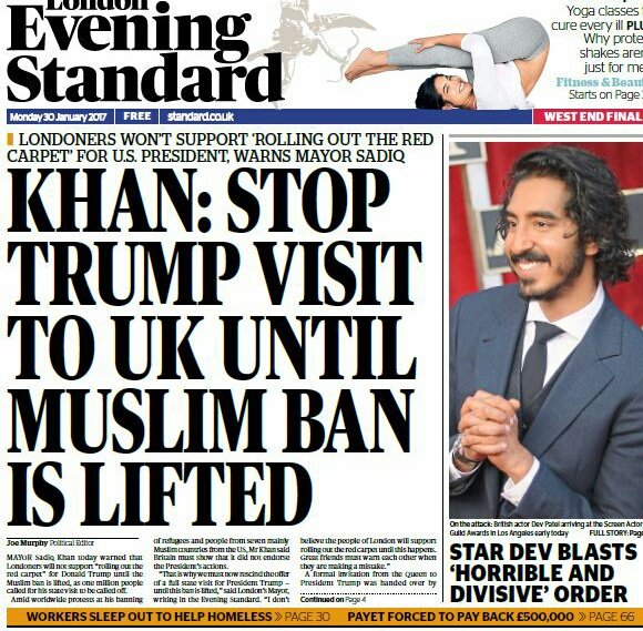 London's Mayor says Trump's UK visit should be canceledhttps://twitter.com/sadiqkhan/status/826051061584654338 …
