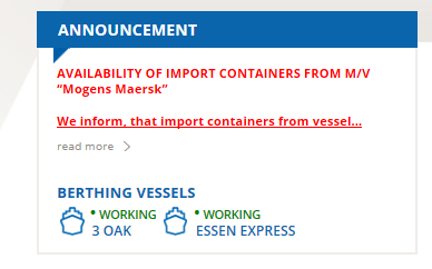 You can check currently berthing vessels in