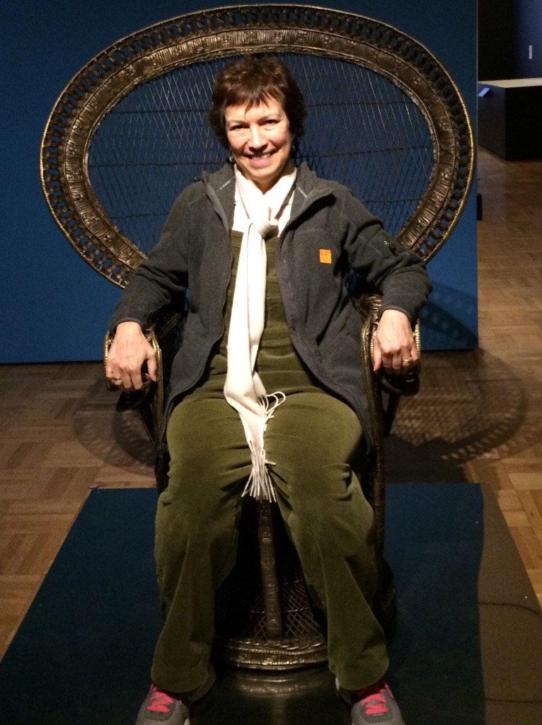Me in the Huey Newton chair (sans gun and spear) at a Black Panther exhibit at the Oakland Museum.pic.twitter.com/vSn7zgKC1P