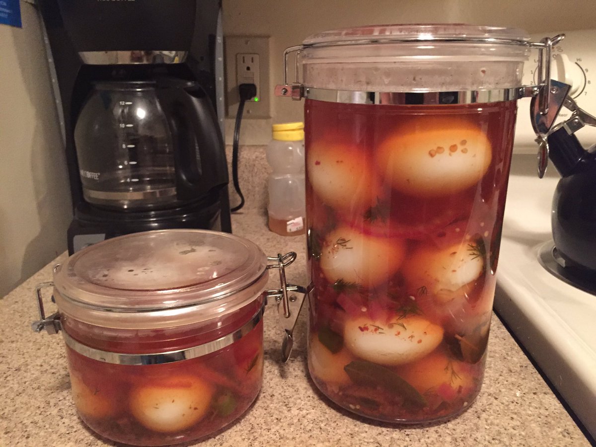 My friend from NY is visiting and he wanted us to make some pickled eggs. Now we wait a week for the glory.pic.twitter.com/xm927QYbZo