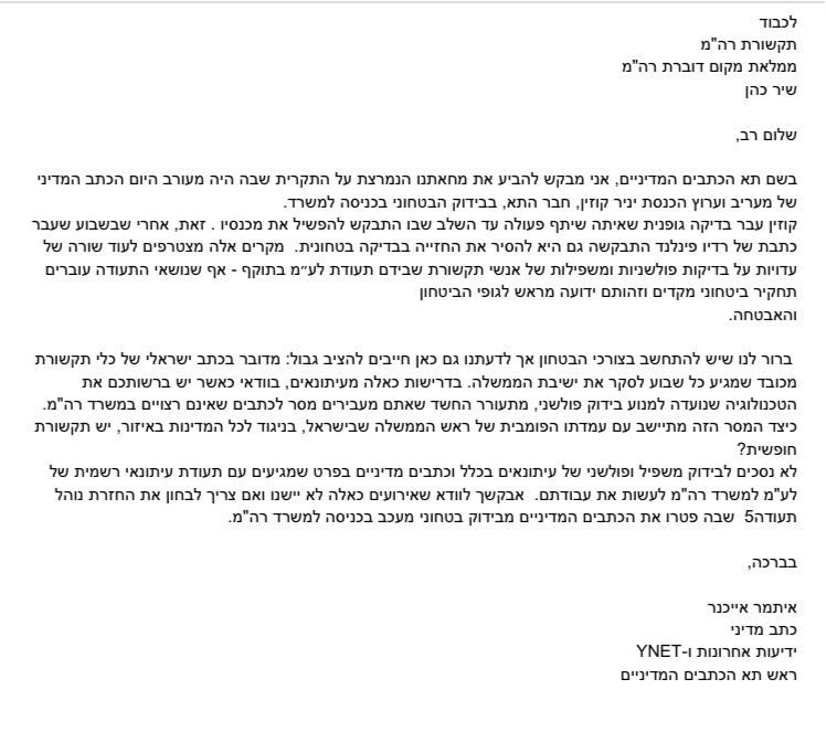 @itamareichner במחאה על הבידוק הפולשני בכניסה למשרד רה״מpic.twitter.com/dkqZp7CW1I