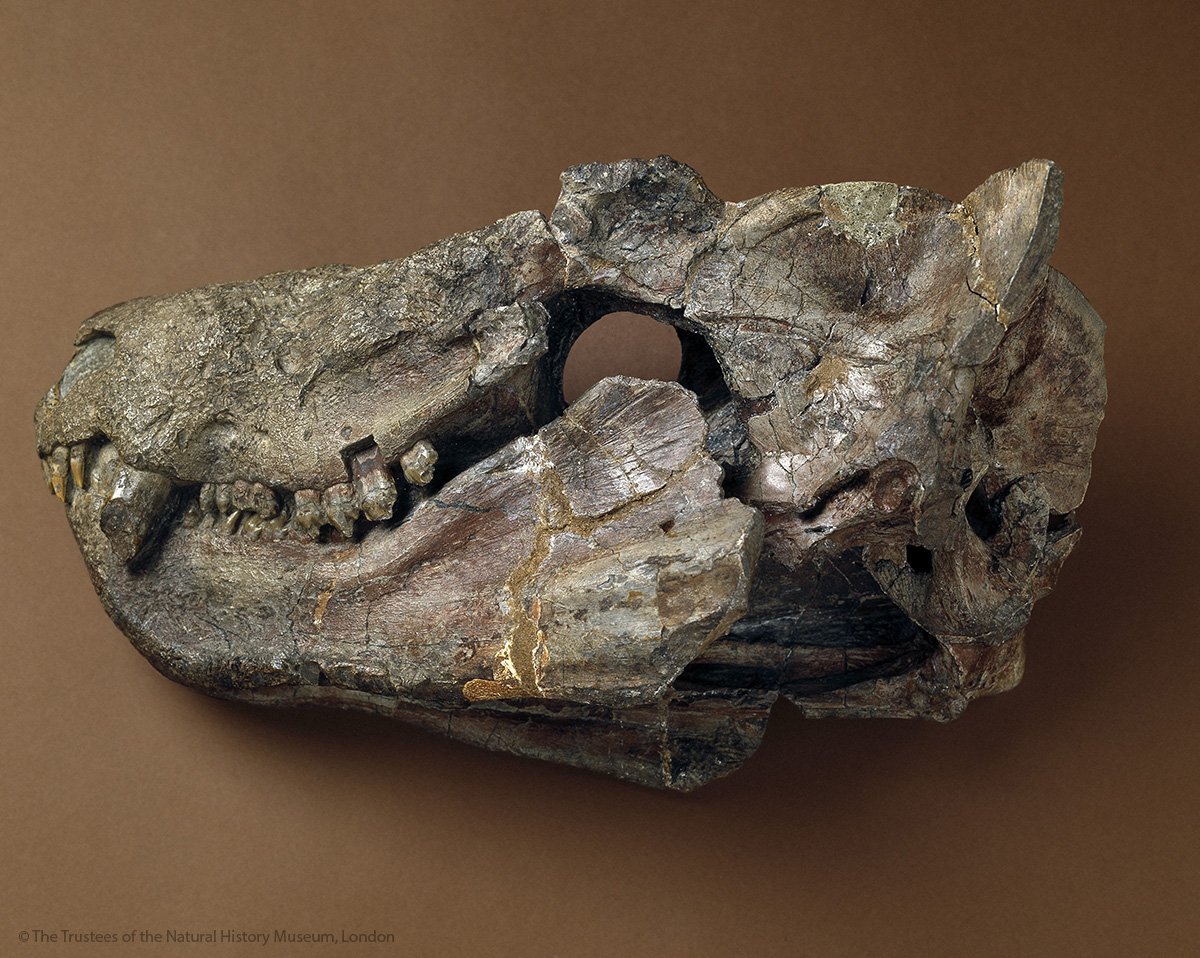 Cynognathus skull, an extinct therapsid mammal-like reptile from the Triassic period