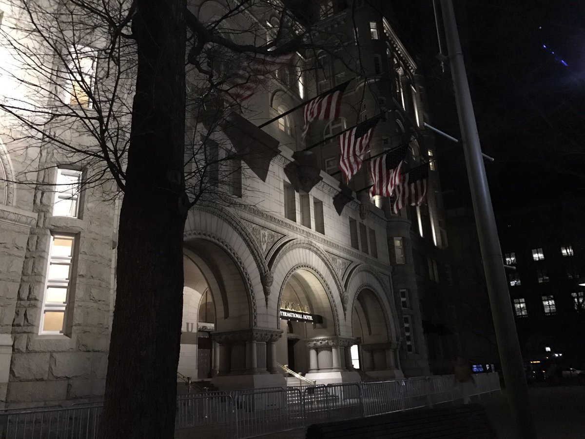 @potus' Saturday night: a trip down Pennsylvania Ave to Trump International Hotel where he just arrived. -