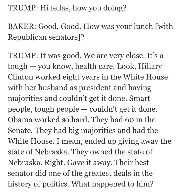 In his NYT interview, Trump brought up Hillary in response to the first question (the question was how was lunch) https://nyti.ms/2vE3Bbg pic.twitter.com/zhDjbVAqcx