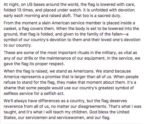 The flag brings real patriots to their feet, not their knees. https://www.facebook.com/EricGreitens/posts/10155813519599747 …pic.twitter.com/y9pjsRvC5o