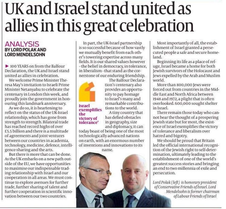 ⚡️ “Conservative MPs and Lords celebrate Balfour Declaration centenary”