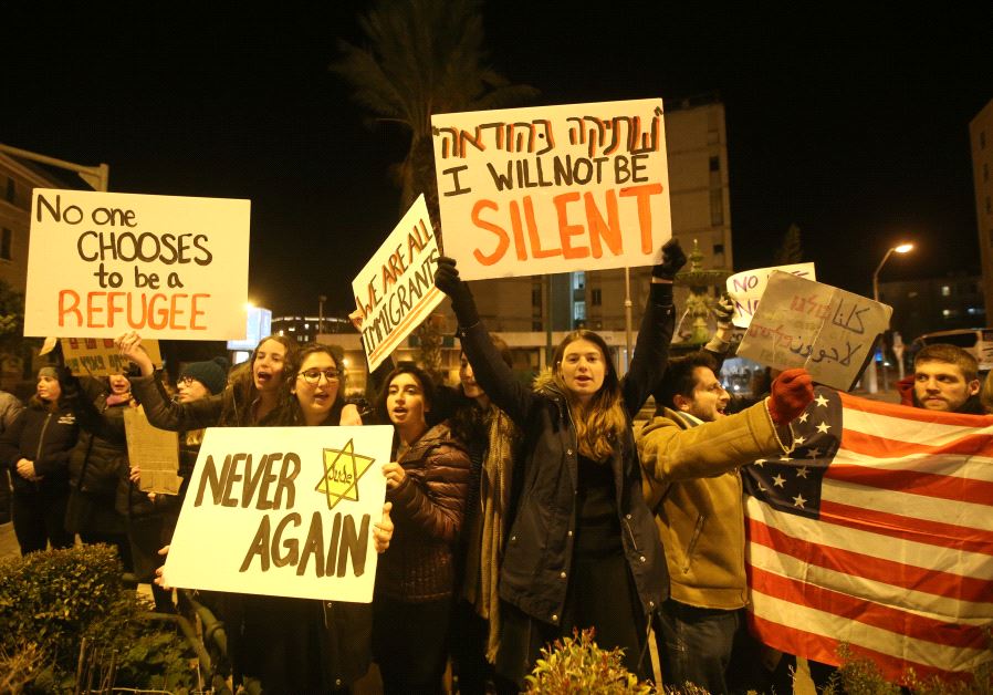Tonight in Jerusalem and Tel Aviv: American Israelis protest Trump travel ban, citing history of Jewish refugees