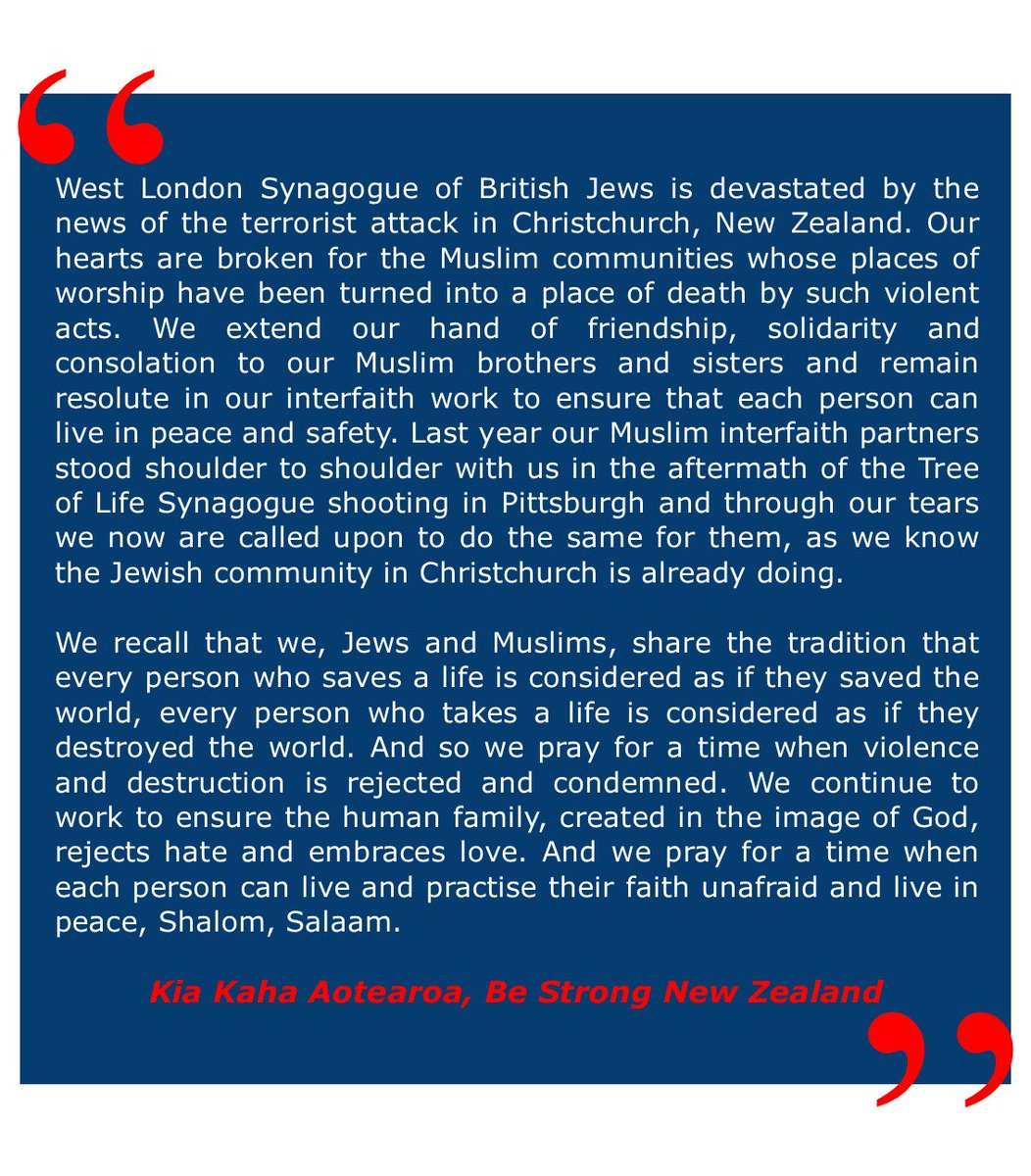 #Christchurch & extend our hand of friendship, solidarity & consolation to our Muslim brothers & sisters & remain resolute in our interfaith work to ensure that each person can live in peace and safety. Kia Kaha Aotearoapic.twitter.com/4yDjIMOe0l