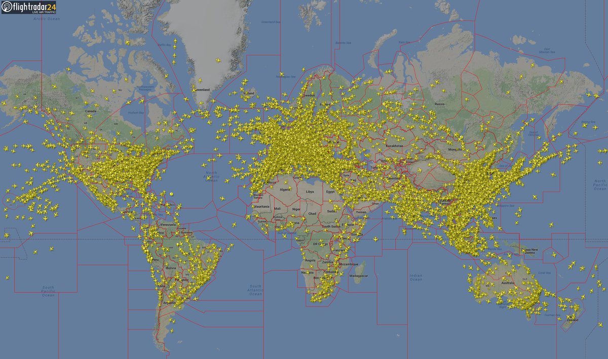 Fridays are travel days. Currently tracking 12.000 aircraft but expect up to 18.000 aircraft in about 4 hours. https://www.flightradar24.com/ pic.twitter.com/c5Vt5JeBEm