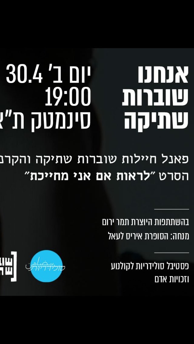 אני אדבר בפאנל ביום שני ואשמח לראותכם. זה חשוב מאין כמותו. סרט שלא יוצא מהלב. (צריך להזמין כרטיסים כי זה בעצם כמו ללכת לסרט, אז תעשו את זה!)
