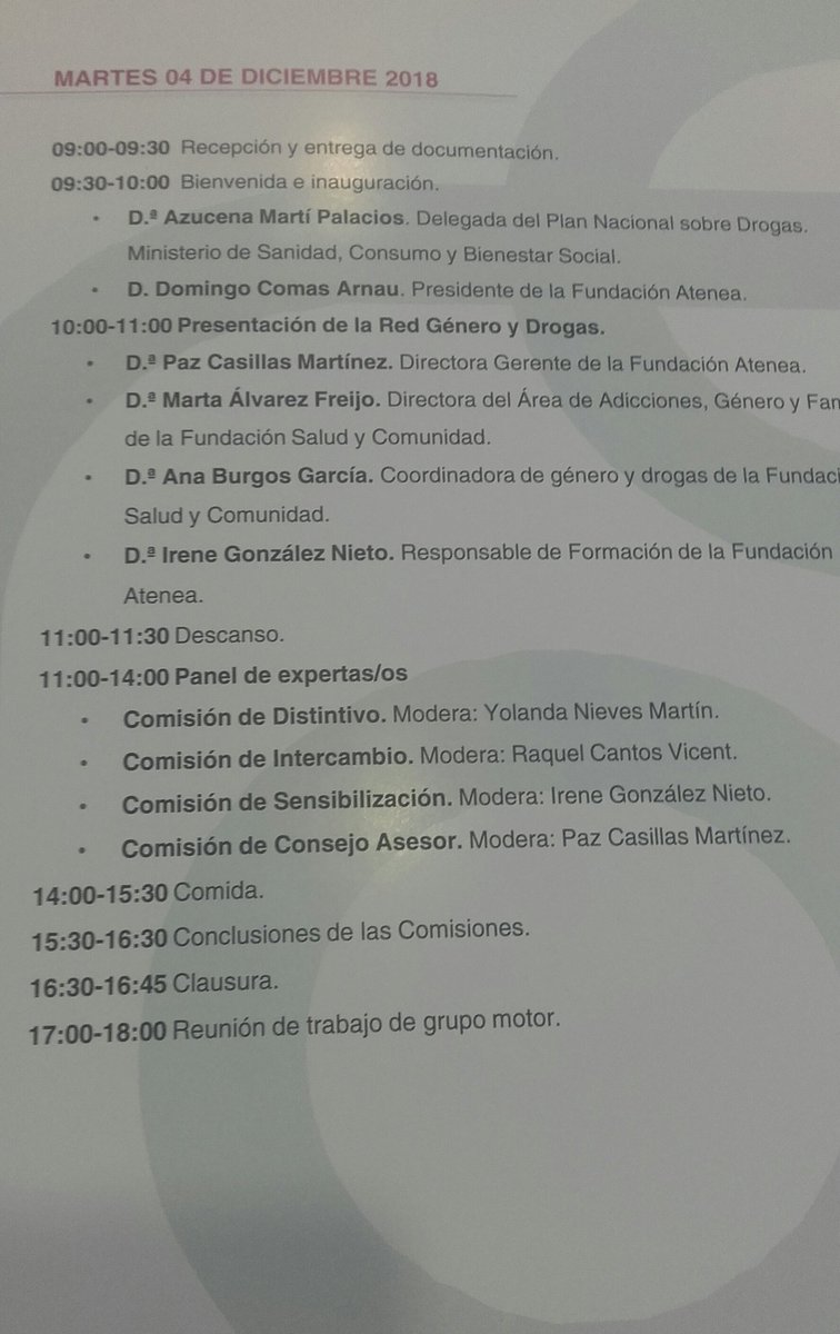 Hoy , coord. de y , y , Directora del Área de Adicciones, Género y Familias de la están, en representación de la FSC, en la I Jornada de la Red en Madrid q la FSC y la están impulsando