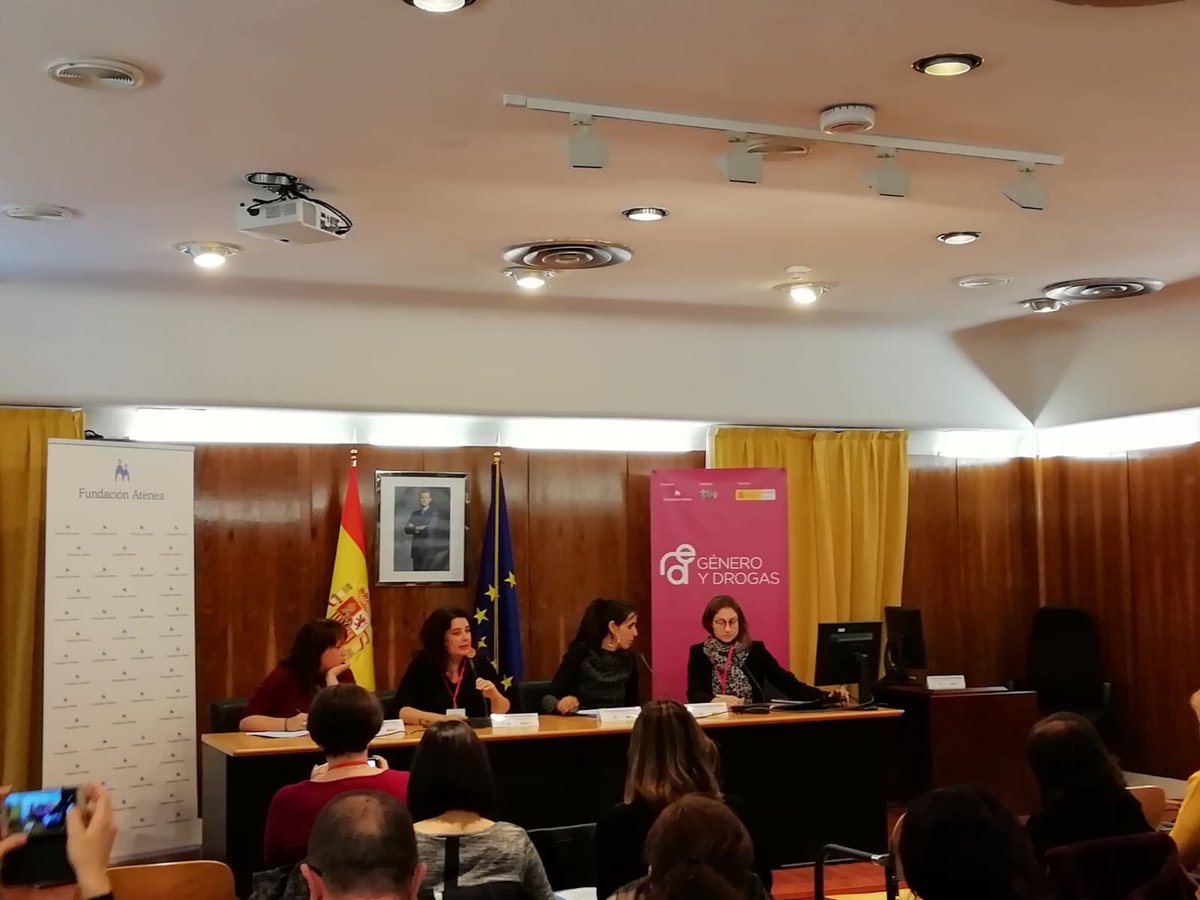 Presentación de la Red Género y Drogas, impulsada por y , por parte de , , y en la sede del en Madrid.