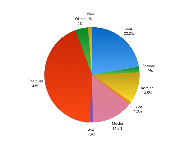 ► Jest at 22%, then mocha 14%, & jasmine 10%