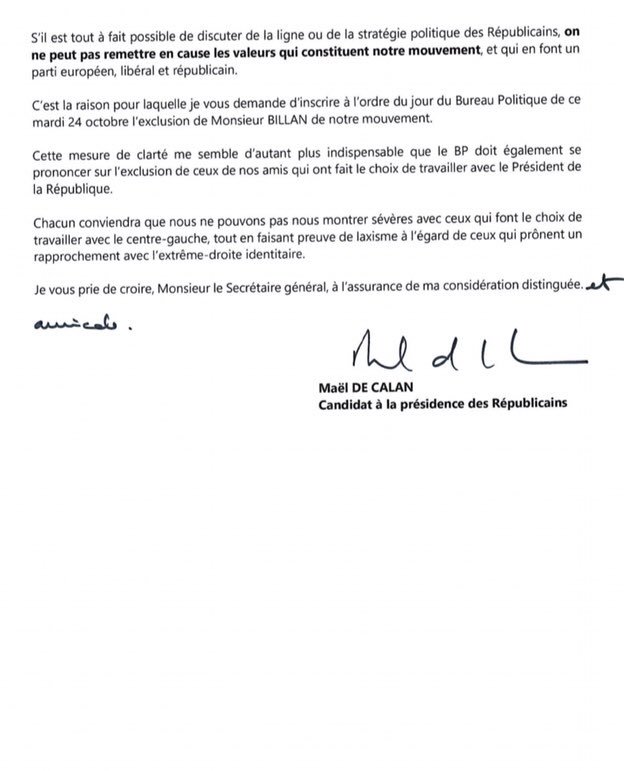 1) J’ai demandé à notre Secrétaire général de soumettre au Bureau politique de l’exclusion du président de .