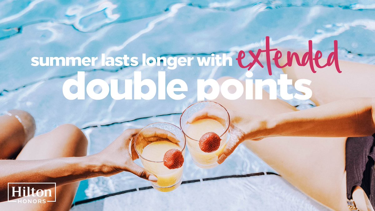 Double down on your last minute summer getaway, and earn Double Points when you stay! Now extended through Labor Day weekend until September 9th.