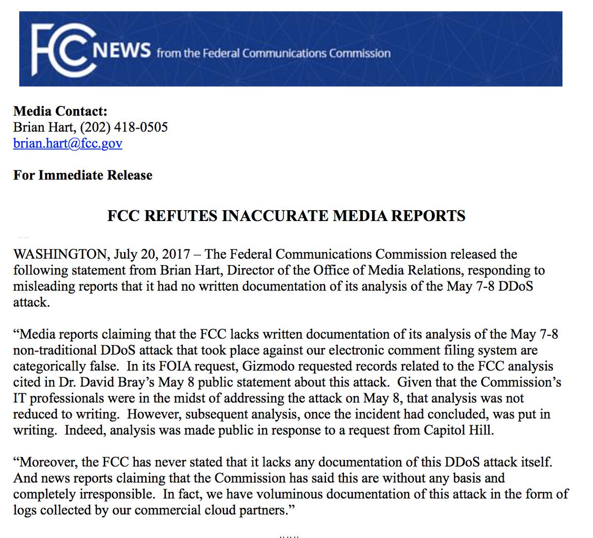 Here's the comment confirming the accuracy of Gizmodo's report, rec'd after FCC's "INACCURATE MEDIA REPORTS" statement & my story yesterday.