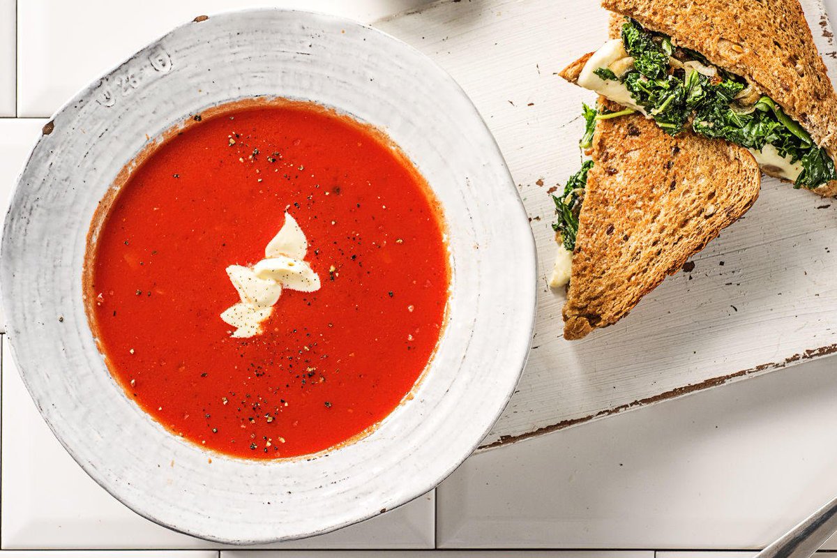 Me: I'm really CRAVING grilled cheese for dinner. HelloFresh: we hear you, son. Kale grilled cheese with tomato basil soup:
