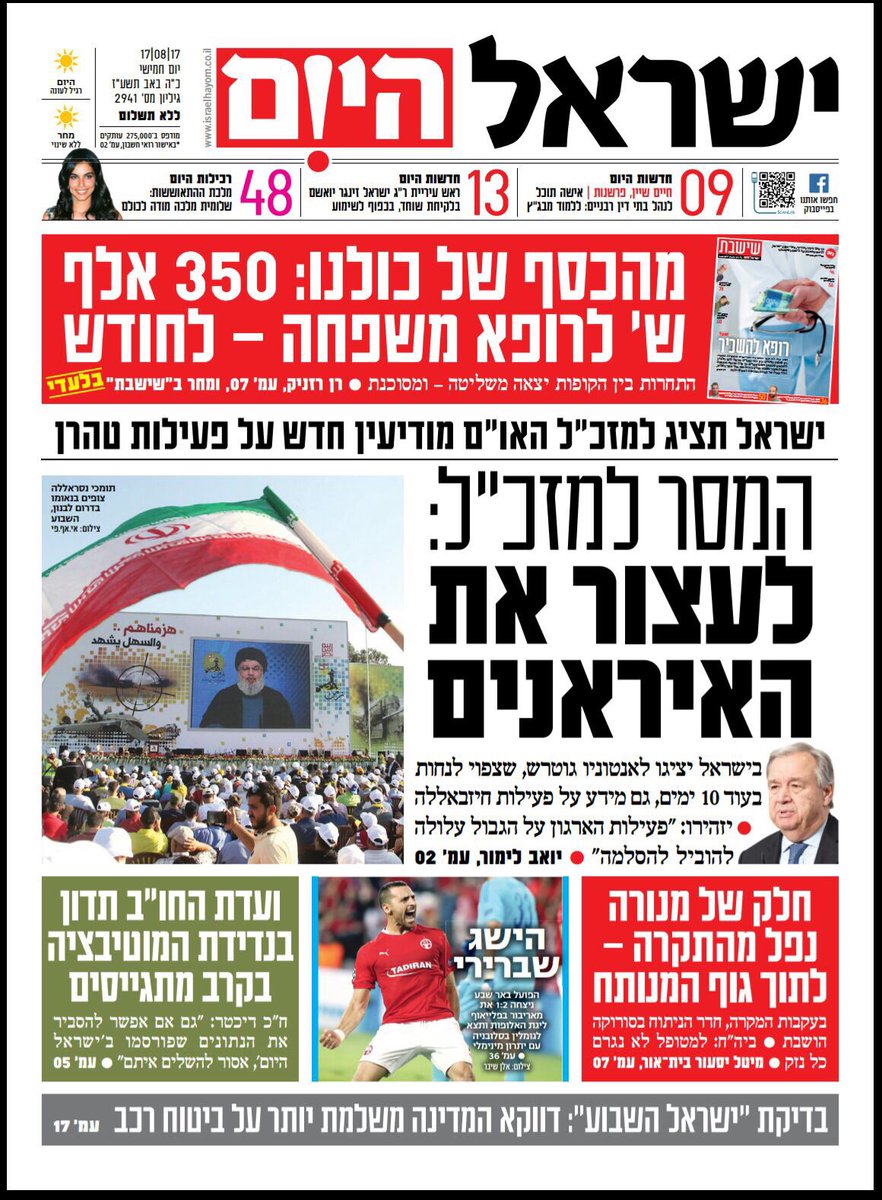 Adelson's Israel Hayom is only daily that doesn't feature Trump's comments on front page. First mention on pg. 24!!