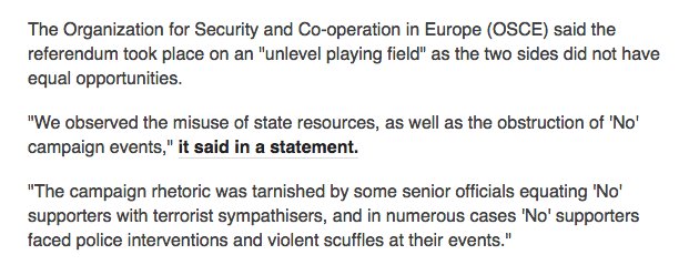 By its standards, the OSCE is absolutely shredding Turkey's referendum. http://www.bbc.com/news/world-europe-39618614 …pic.twitter.com/wbSV5l6TUU