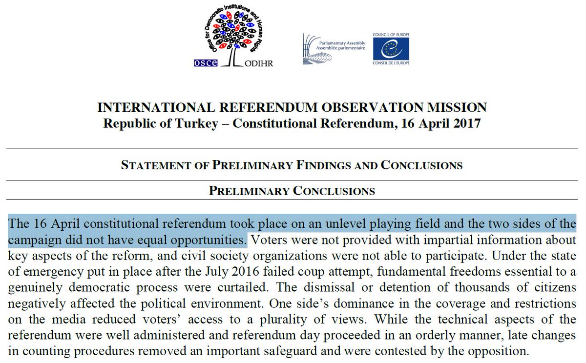 @OSCE verdict of Turkey's referendum is summarised in sentence number one. http://www.osce.org/odihr/elections/turkey/311721?download=true …pic.twitter.com/lQffPUySo6