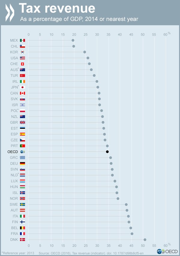 Conrad Hackett @conradhackettTaxes as % of GDP Denmark 51% France 45% Norway 39% Germany 36% UK 33% Turkey 29% US 26% https://data.oecd.org/tax/tax-revenue.htm … pic.twitter.com/xLI3jEEIGf0 ಮರುಟ್ವೀಟಿಸುವಿಕೆ 1 ಇಷ್ಟ -